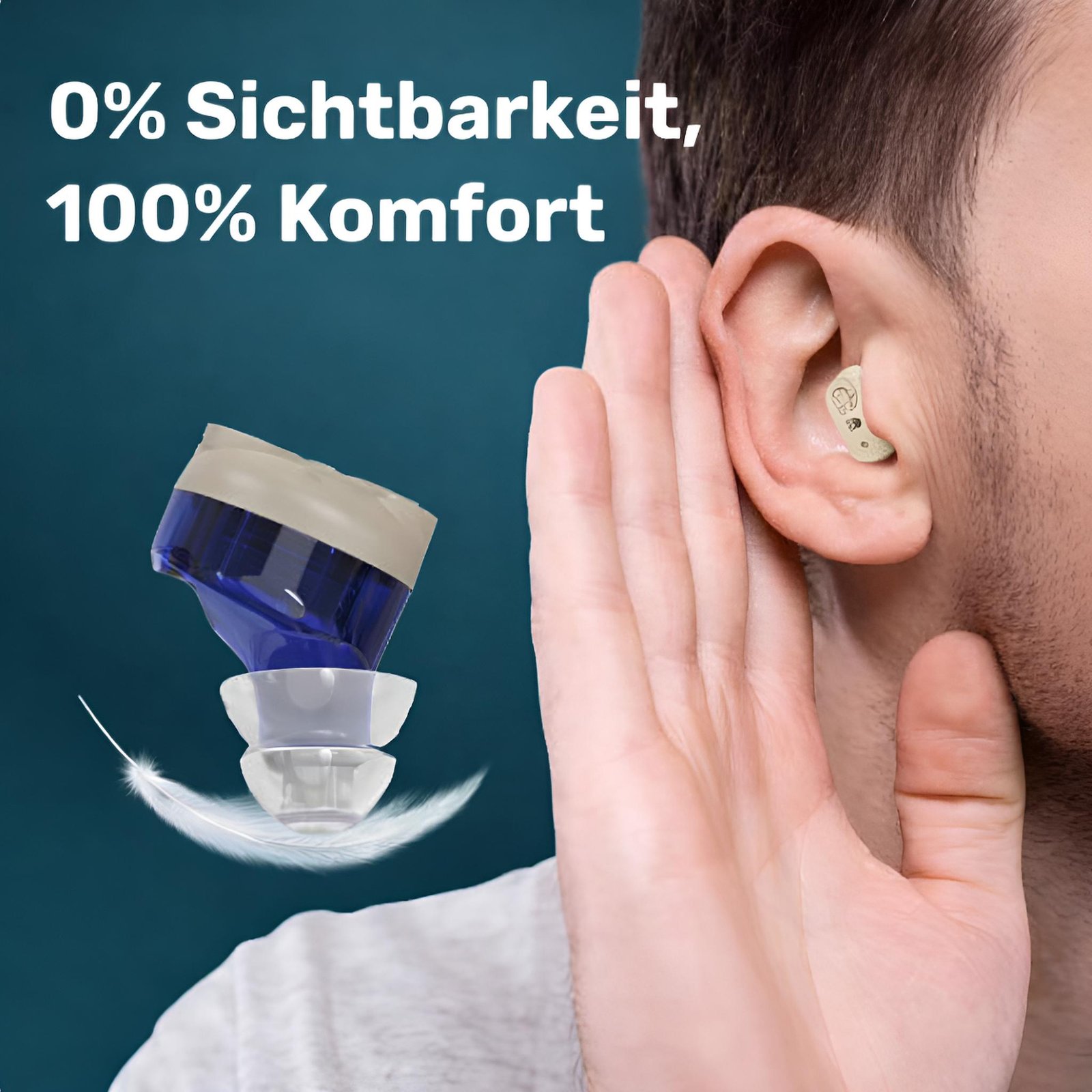 • Unsichtbares Design, das das psychologische Unbehagen beim Tragen eines Hörgeräts reduziert